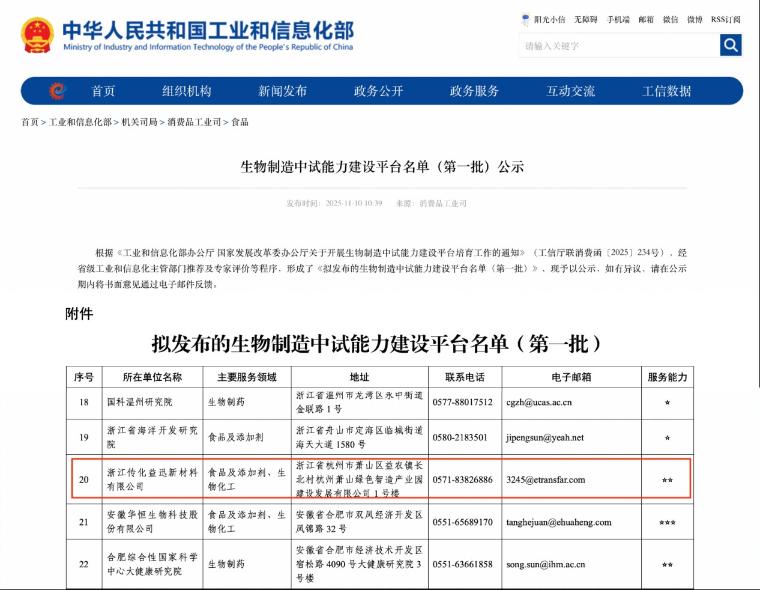 近日,工业和信息化部、国家发展改革委联合公示全国首批生物制造中试能力建设平台名单,全国共有43家单位入选。由传化集团与国有资本合作建设运营的“杭州合成生物产业中试(验证)中心”成功入选,成为浙江省代表...