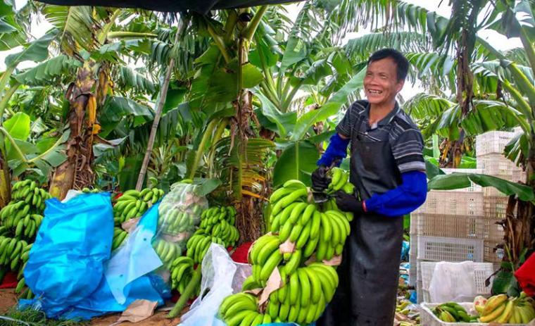 图为海南东方八所的香蕉进入成熟收获期,使用了华强化工集团美农吧复合肥的香蕉喜获丰收。吴明伟 摄