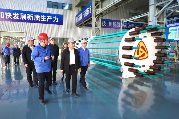 ▲图为李星辰一行观摩潞安化机氢能装备“晋华槽”智能化生产线。该条生产线为山西省首条GW级(100台/年)智能化生产线。