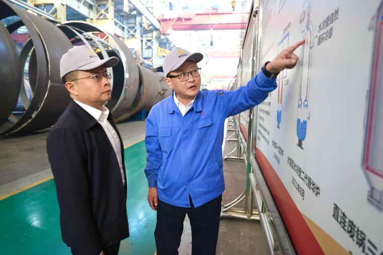 ▲图为潞安化机副总经理杜文华(右)为李星辰介绍公司核心产品“晋华炉”。