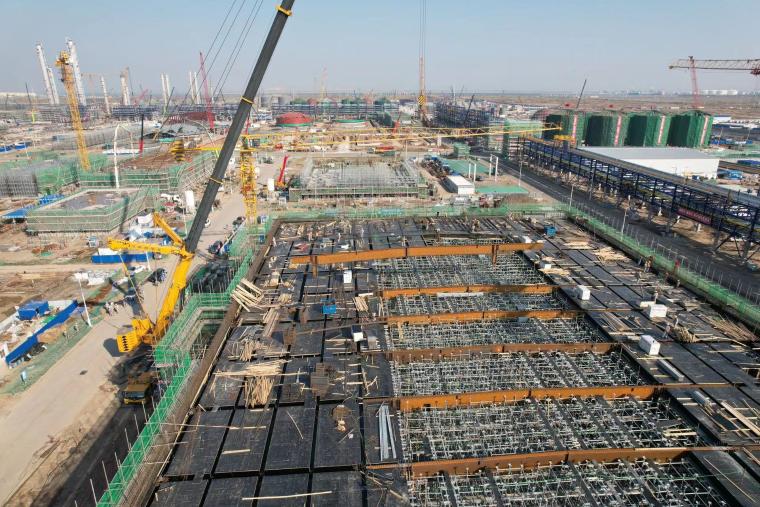10月11日,随着最后一榀钢结构人字梁精准吊装就位,由石化四建电仪公司承担施工的天津南港乙烯中心控制室项目中控大厅钢混结构钢梁吊装顺利完成,为主体结构封顶打下坚实基础。