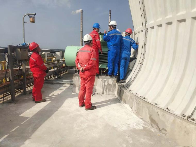 为攻克施工难点、保障项目质量与进度,项目团队构建全维度精细化管控体系。进度管控上,采用“单塔攻坚、分批投用”策略,将12台冷却塔划分为3个施工单元,从3月首台改造投用至9月全部完工,关键节点有序落地,既避免集中施工对生产的干扰,又确保整体进度可控;资源调度方面,建立“人、机、料”实时调度机制,提前与供货方锁定关键设备到货周期,将设备到货时间压缩10%,最大限度减少工序等待;安全管理上,每日召开业主、监理、施工单位多方协调会,明确作业区域与安全要求,划分独立警戒区、推行高温错峰施工并配备防暑物资,全程实现“零安全事故、零生产影响”;质量把控上,严格执行“自检、互检、专检”三检制,对塔内填料安装、喷淋头校准等关键工序安排技术人员全程旁站监督,12台冷却塔均一次性达到设计运行标准。