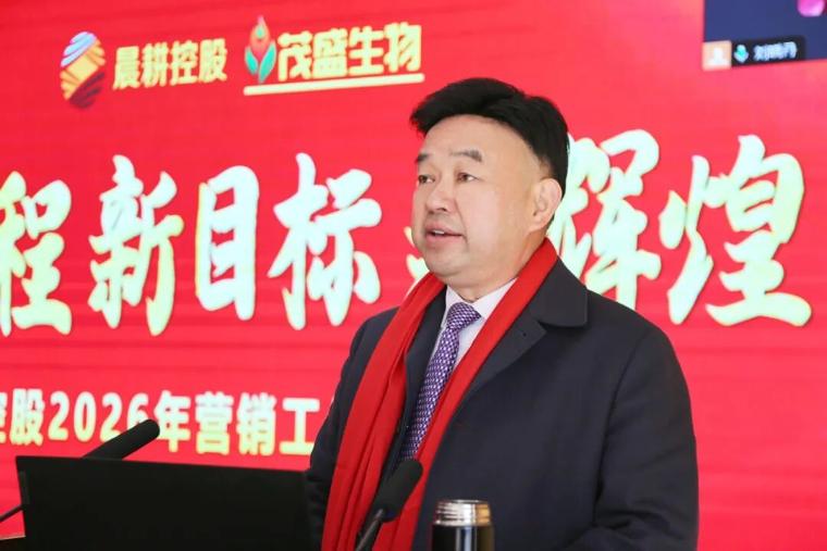 中化新网讯 1月12日,晨耕智慧农业控股有限公司在湖北随州总部隆重召开主题为“新征程、新目标、新辉煌”的2026年营销工作开门红大会,凝聚全产业链力量,擘画新年营销发展蓝图。晨耕控股董事长周义新、总经理晏先荣等核心管理层,各营销团队精英、融媒体中心与综合服务中心全员,后勤机关各部门负责人及生产线副厂长以上干部通过线上线下结合的方式参会,共赴这场攻坚奋进的动员盛会。