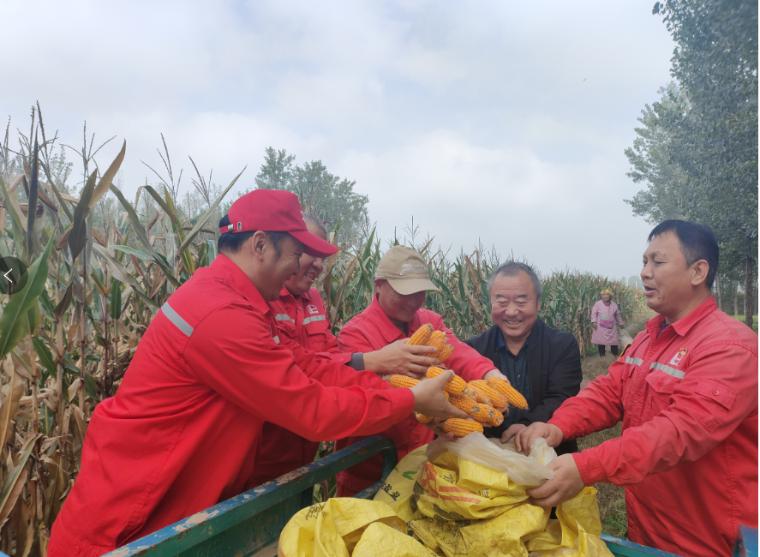 连日来,黄淮地区遭遇持续秋雨天气,中原油田天然气产销厂巡线大队把助力当地农村抢收抢种,作为加强与改善油地关系的有效途径,积极组织巡线队员在高质量完成日常管线巡查任务后,主动帮助管线沿线村民抢收玉米,解除困难农户的燃眉之急,受到当地政府肯定与农户点赞。图为10月21日,巡线队员深入濮阳县柳屯镇柳屯村部分农户田间地头开展助农行动。