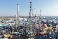 11月14日,由石化四建公司承担的中煤榆林煤炭深加工基地项目完成T-2602乙烯精馏塔的吊装任务。
